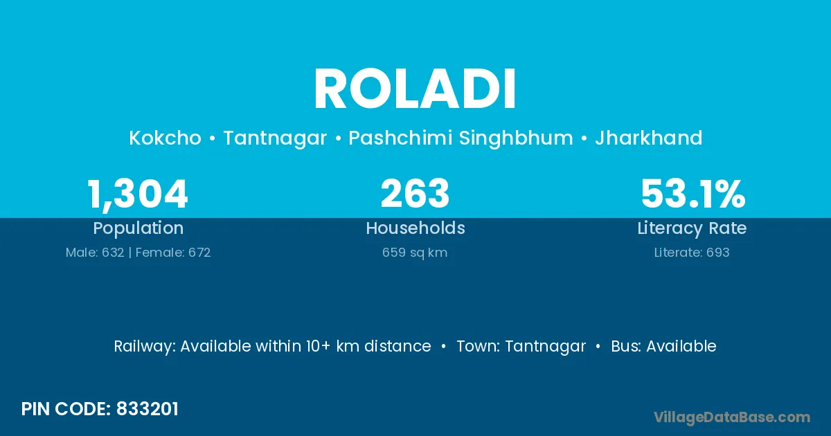 According to Census 2011 information, the village code of Roladi village is 833201.