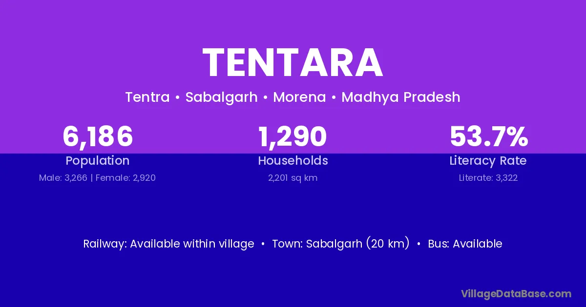 The literacy rate of Tentara village is 44.20%. Male literacy stands at 50.36% and female literacy at 38.57%.