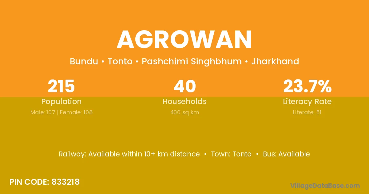 According to Census 2011 information, the village code of Agrowan village is 833218.