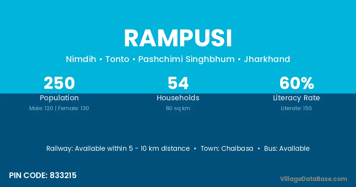 Chaibasa is the nearest town to Rampusi village for major economic activities