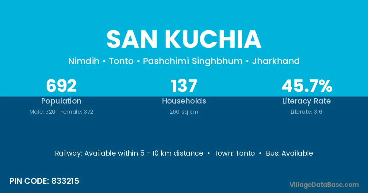 According to Census 2011 information, the village code of San Kuchia village is 833215.