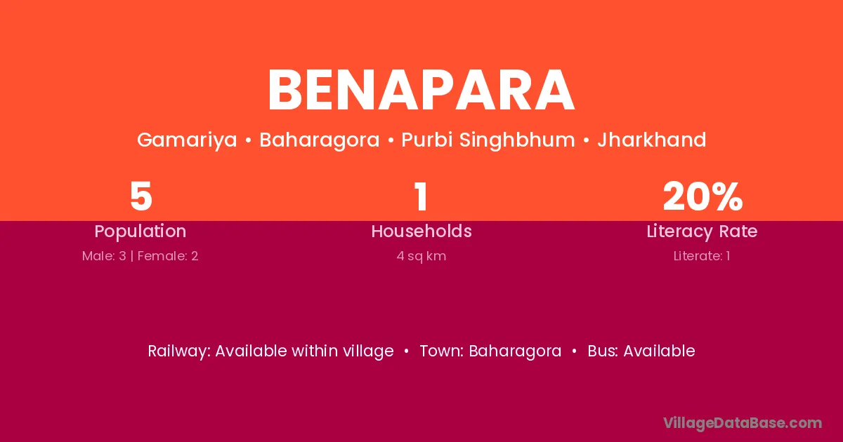 Benapara village has a total population of 5 people, of which 3 are males and 2 are females.