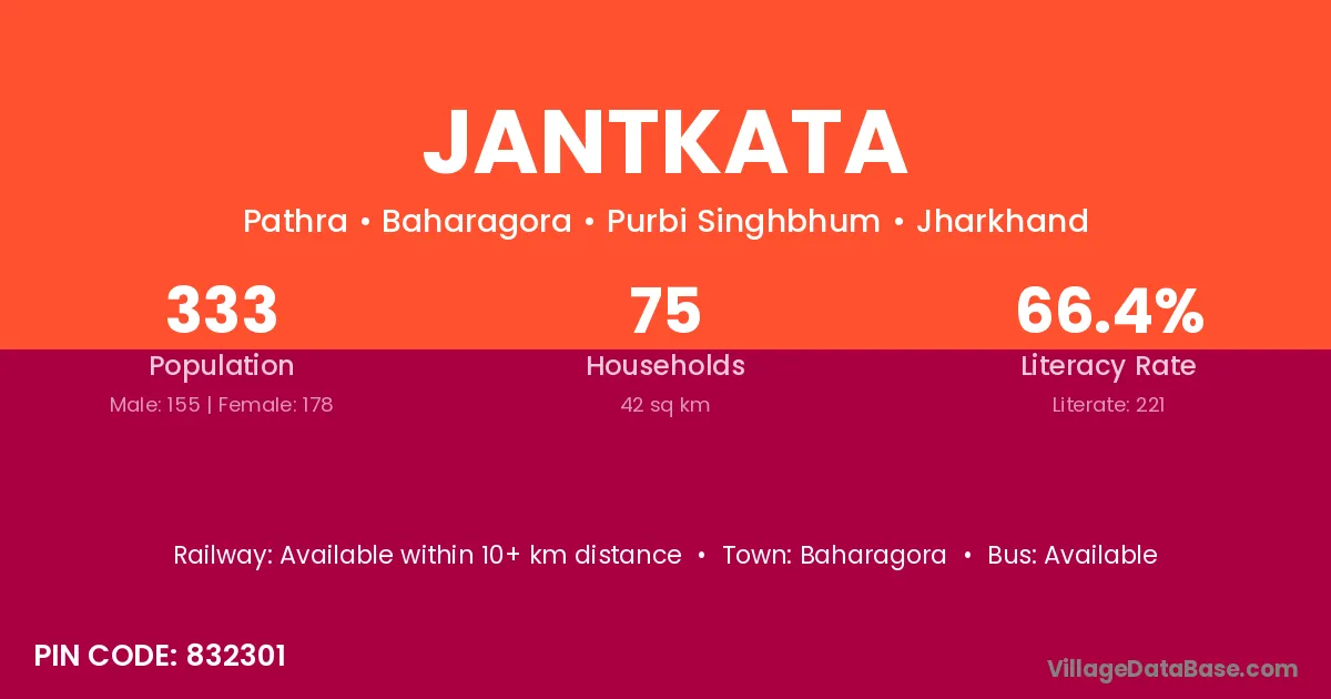 Jantkata village has a total population of 333 people, of which 155 are males and 178 are females.