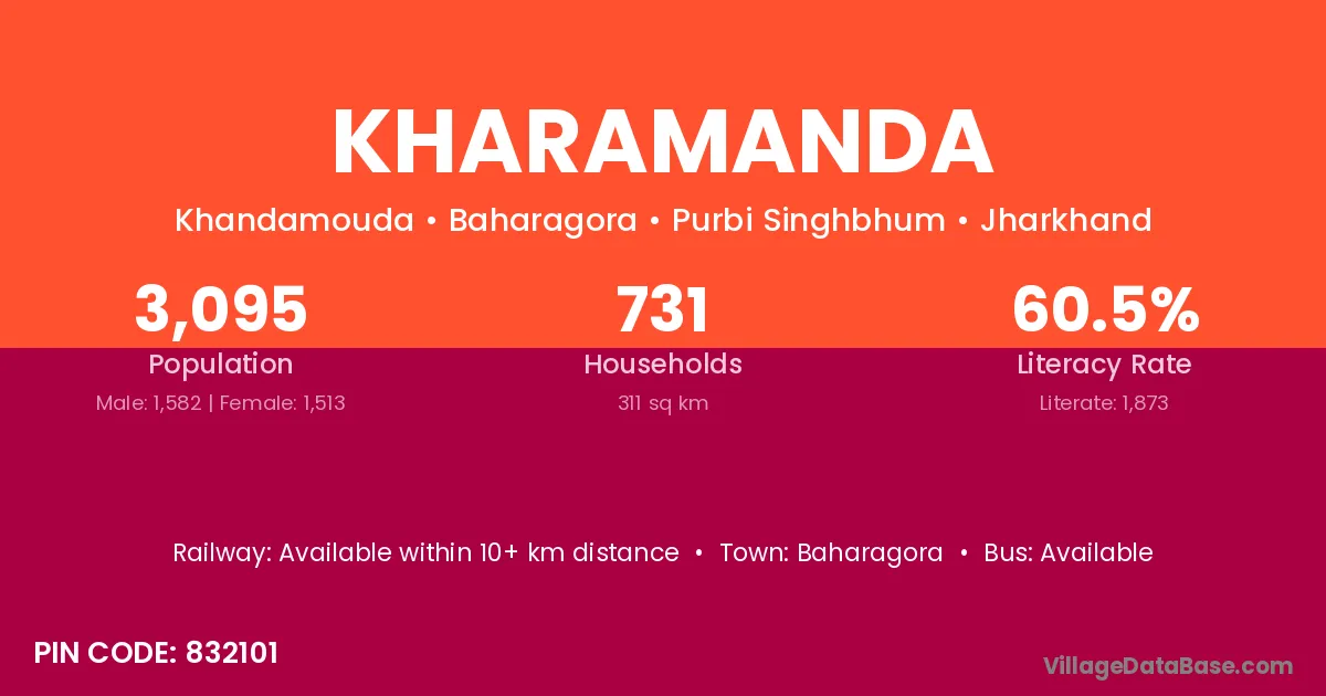 Kharamanda village has a total population of 3,095 people, of which 1,582 are males and 1,513 are females.
