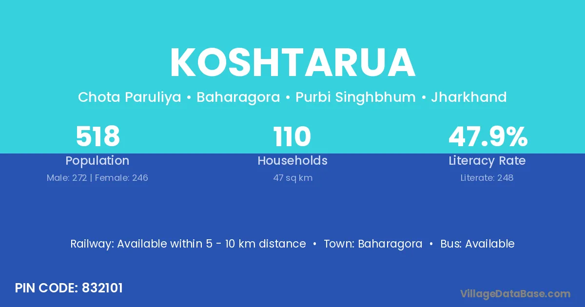 Baharagora is the nearest town to Koshtarua village for major economic activities