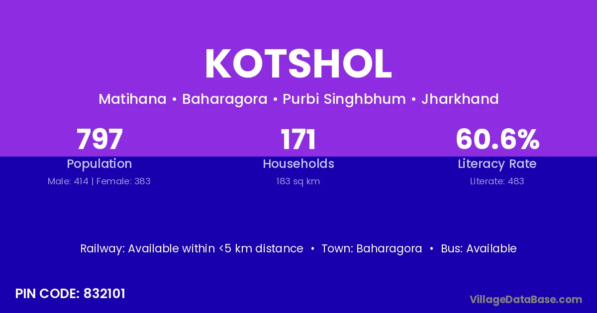 Baharagora is the nearest town to Kotshol village for major economic activities