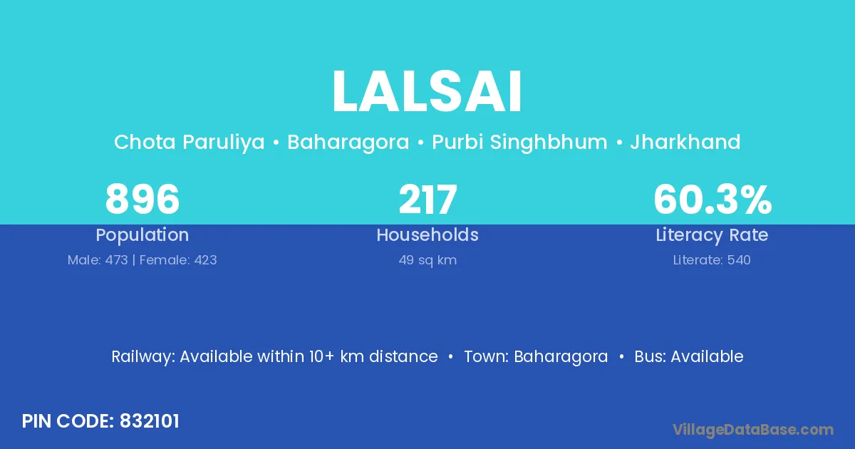 Baharagora is the nearest town to Lalsai village for major economic activities