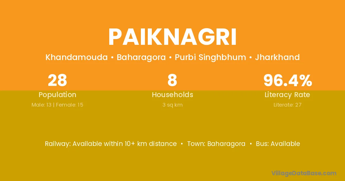 Paiknagri village has a total population of 28 people, of which 13 are males and 15 are females.