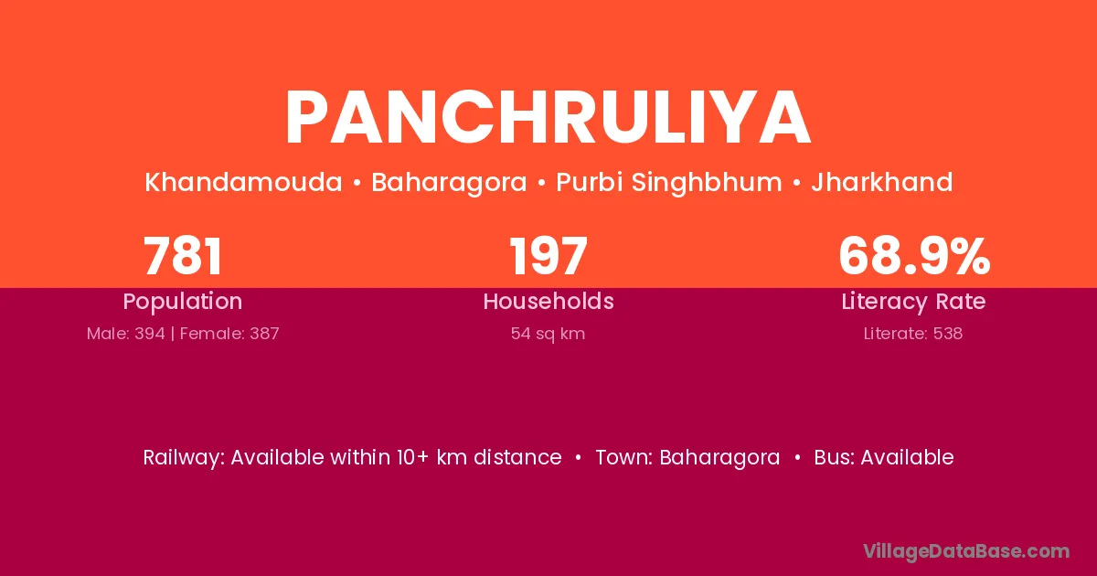 Baharagora is the nearest town to Panchruliya village for major economic activities
