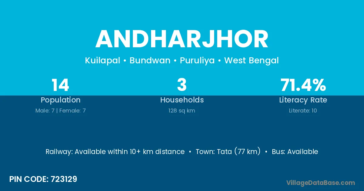 The literacy rate of Andharjhor village is 51.11%. Male literacy stands at 62.14% and female literacy at 40.44%.