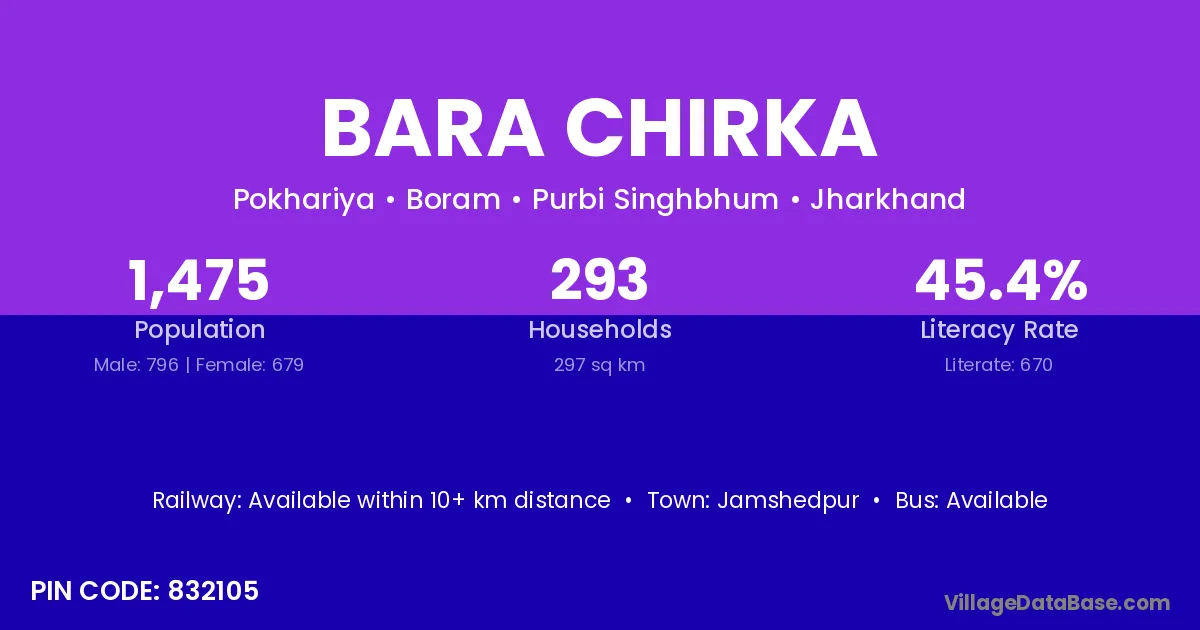 Jamshedpur is the nearest town to Bara Chirka village for major economic activities