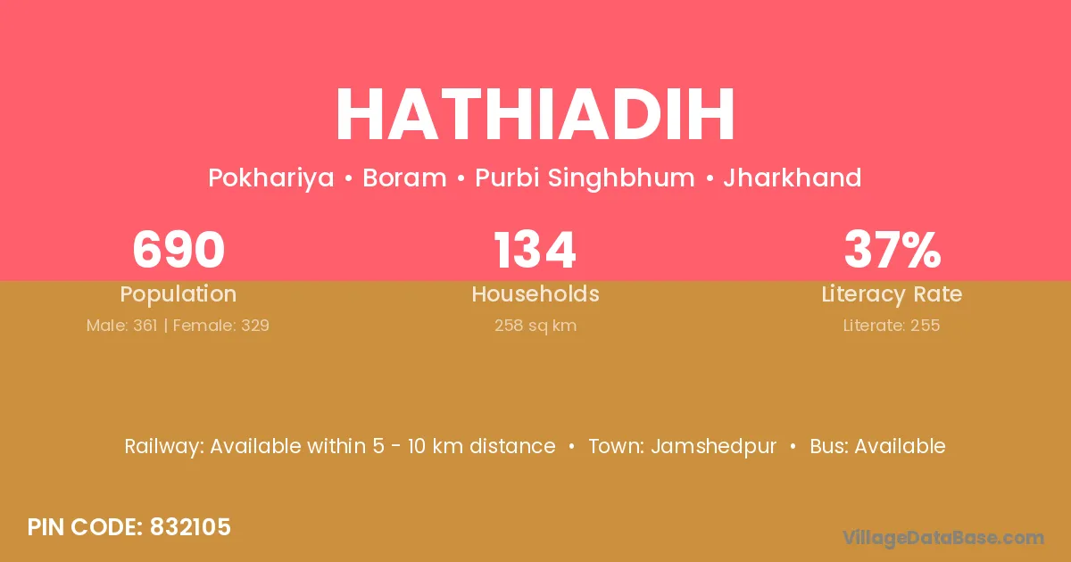 Hathiadih village has a total population of 690 people, of which 361 are males and 329 are females.