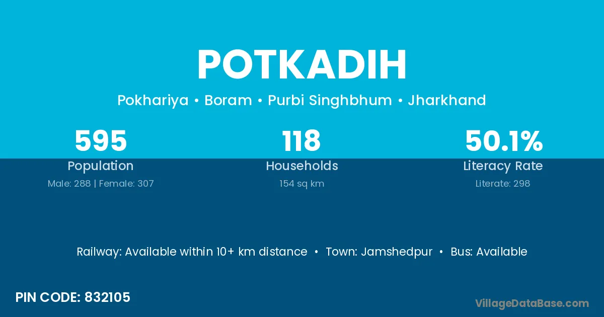 Jamshedpur is the nearest town to Potkadih village for major economic activities