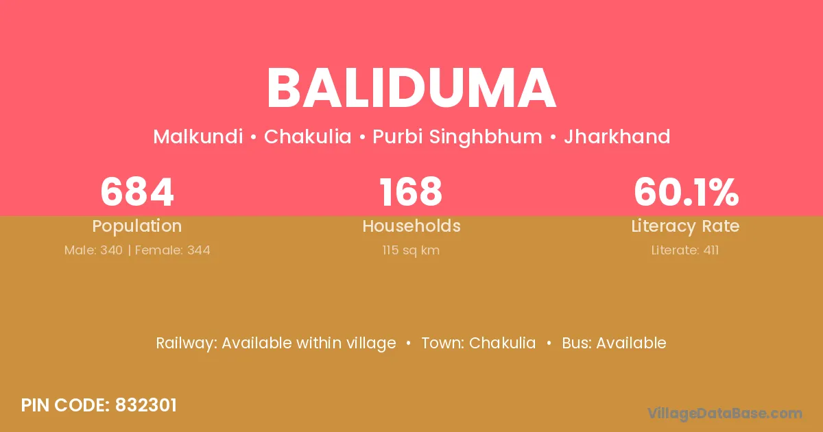 Chakulia is the nearest town to Baliduma village for major economic activities