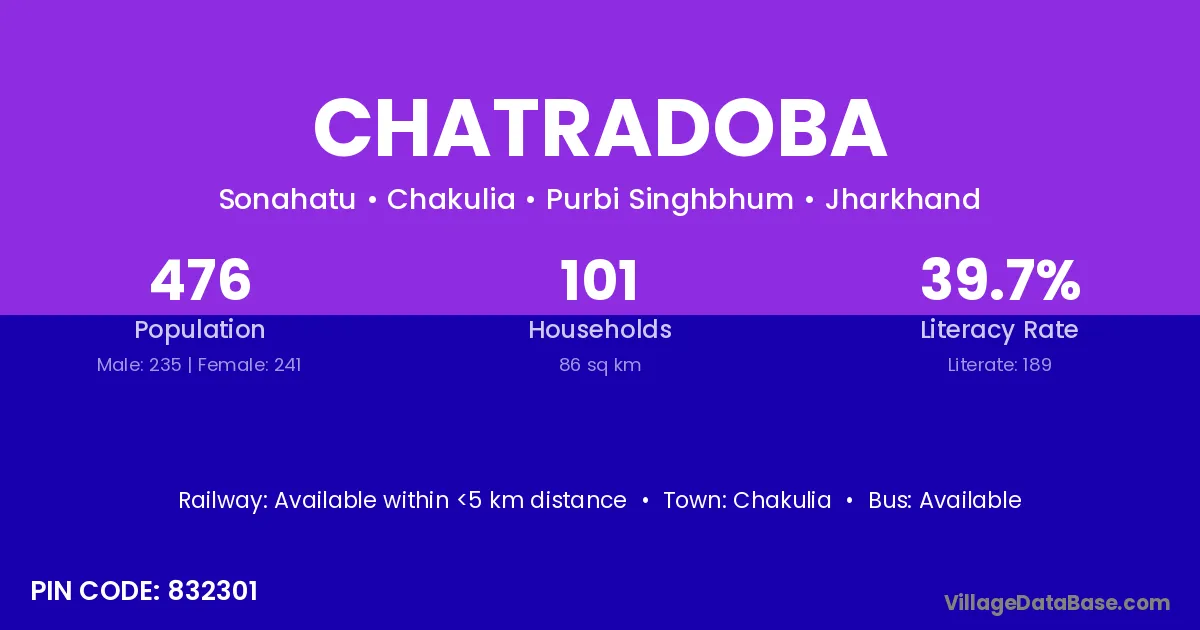 According to Census 2011 information, the village code of Chatradoba village is 832301.