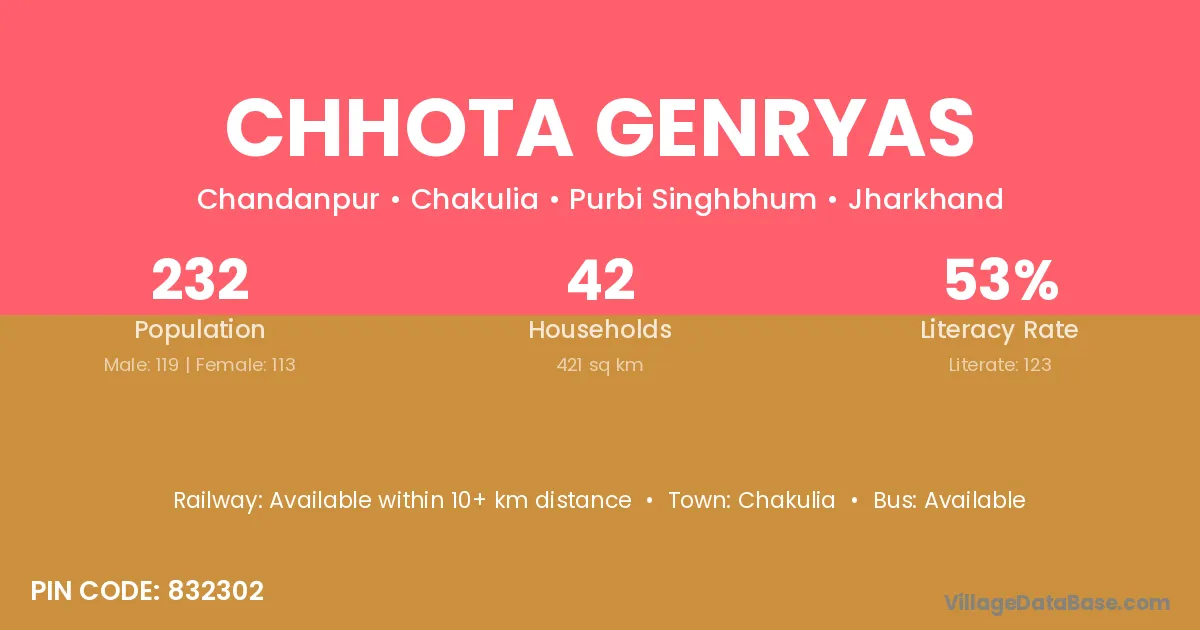 Chhota Genryas village is located in the Chakulia Subdivision of the Purbi Singhbhum district in Jharkhand .