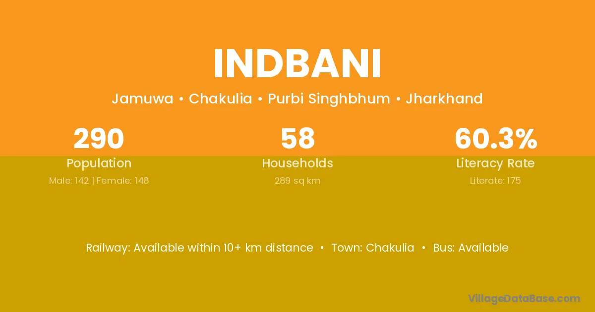 Indbani village has a total population of 290 people, of which 142 are males and 148 are females.