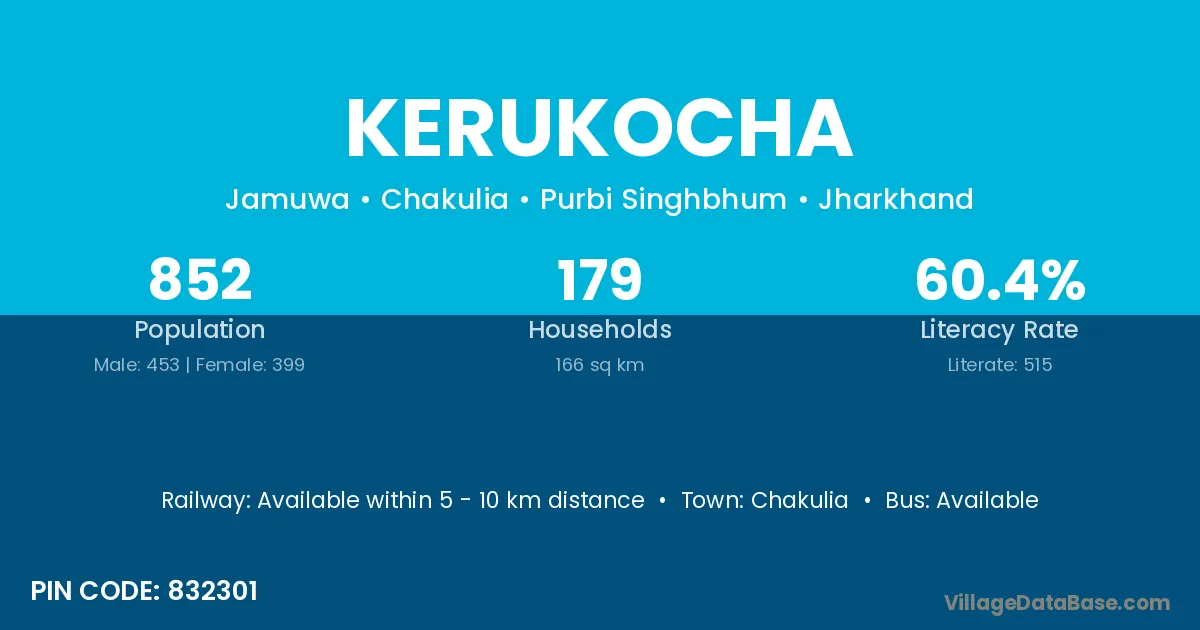 According to Census 2011 information, the village code of Kerukocha village is 832301.