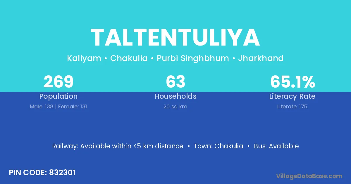 According to Census 2011 information, the village code of Taltentuliya village is 832301.