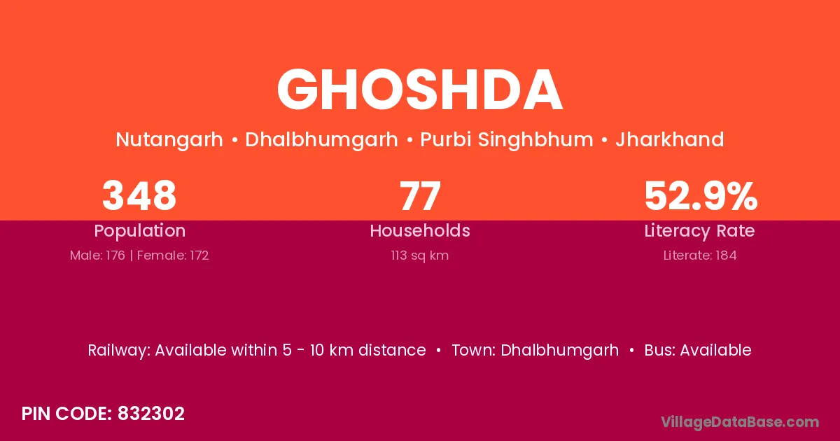 Dhalbhumgarh is the nearest town to Ghoshda village for major economic activities