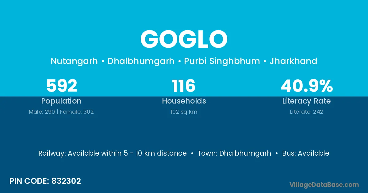 Dhalbhumgarh is the nearest town to Goglo village for major economic activities