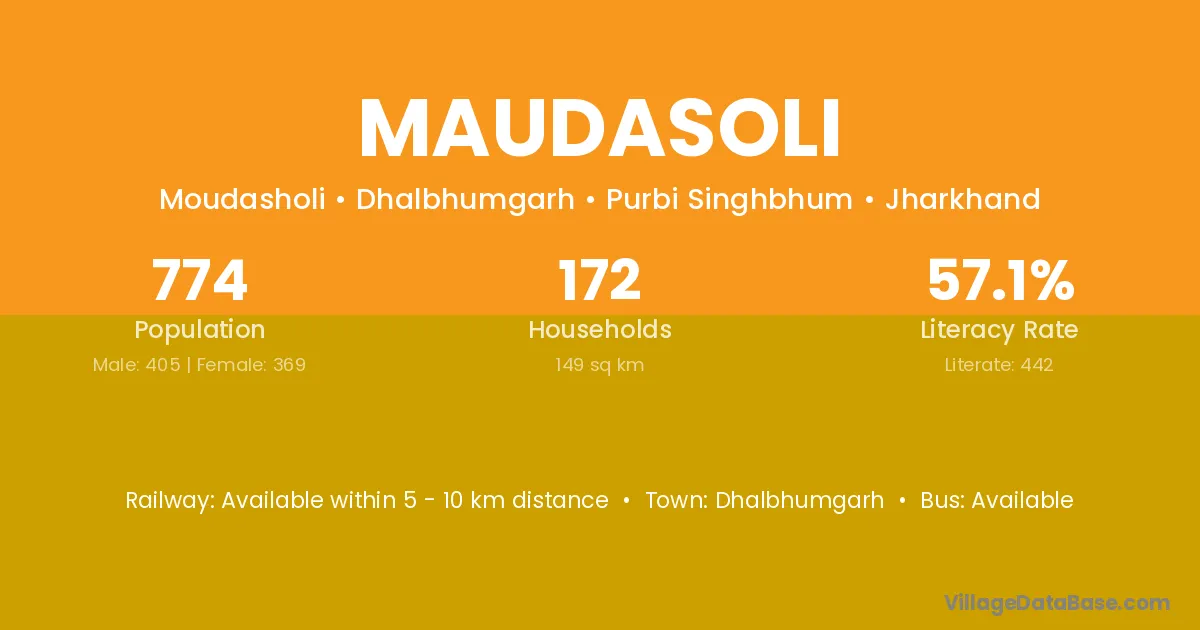 Dhalbhumgarh is the nearest town to Maudasoli village for major economic activities