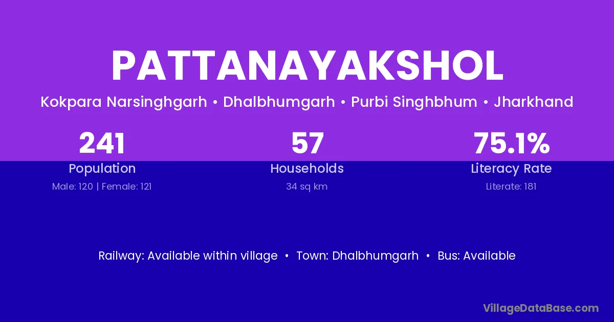 Pattanayakshol village has a total population of 241 people, of which 120 are males and 121 are females.