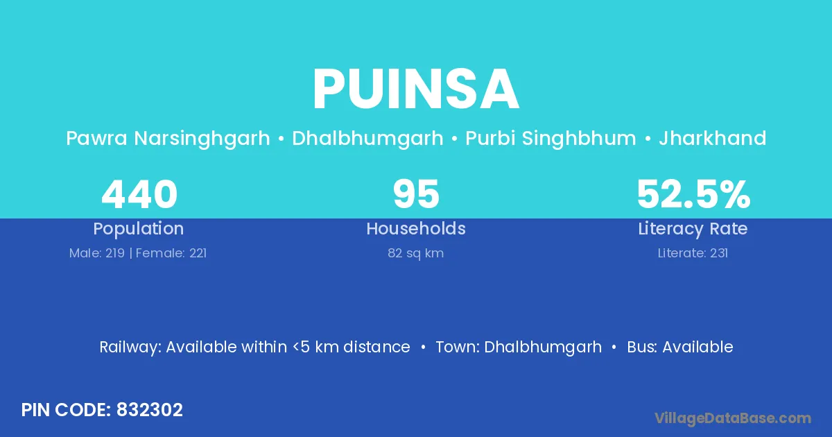 Puinsa village has a total population of 440 people, of which 219 are males and 221 are females.