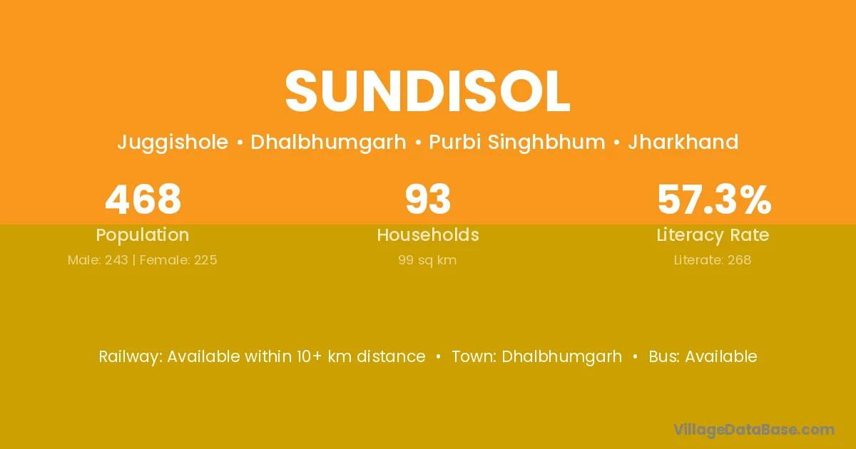 Sundisol village has a total population of 468 people, of which 243 are males and 225 are females.