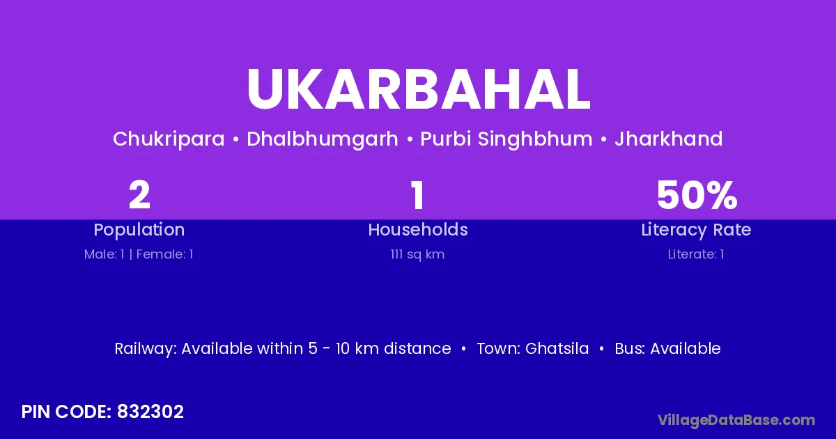 Ukarbahal village has a total population of 2 people, of which 1 are males and 1 are females.