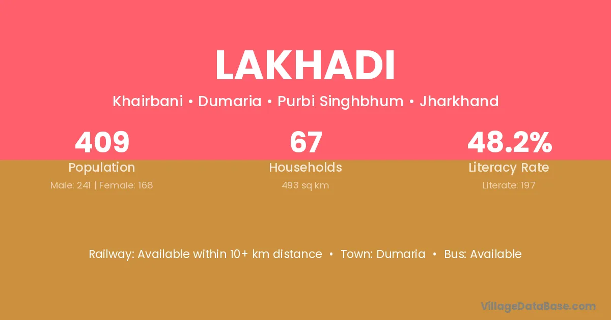 Lakhadi village is located in the Dumaria Subdivision of the Purbi Singhbhum district in Jharkhand .