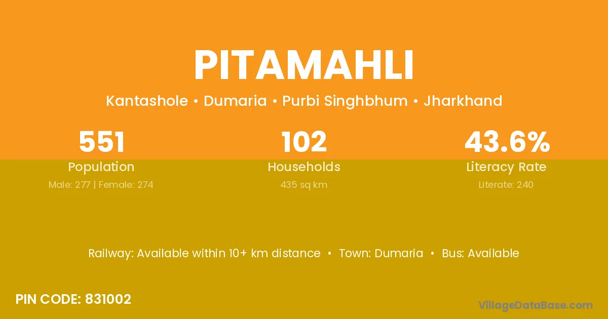 Pitamahli village has a total population of 551 people, of which 277 are males and 274 are females.