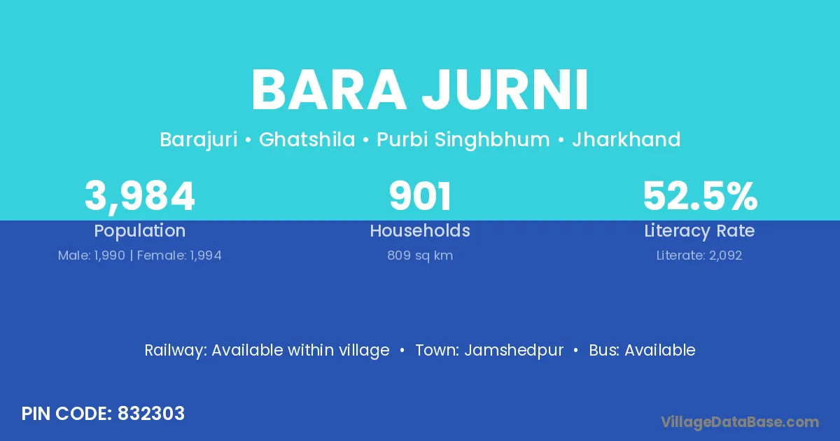 Jamshedpur is the nearest town to Bara Jurni village for major economic activities