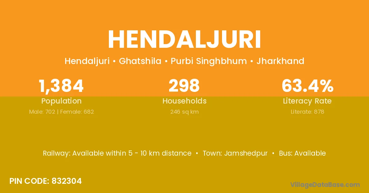 Jamshedpur is the nearest town to Hendaljuri village for major economic activities