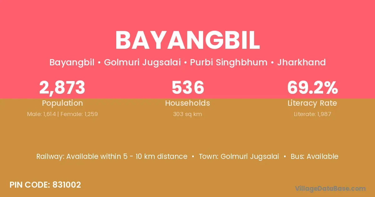 Golmuri Jugsalai is the nearest town to Bayangbil village for major economic activities