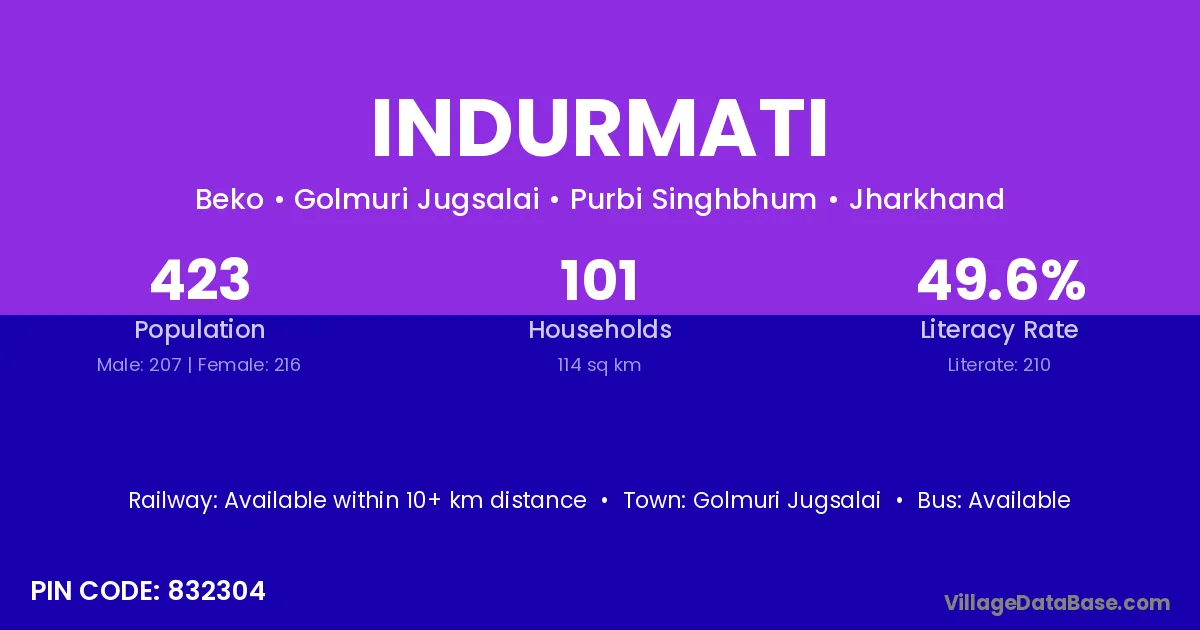 Golmuri Jugsalai is the nearest town to Indurmati village for major economic activities