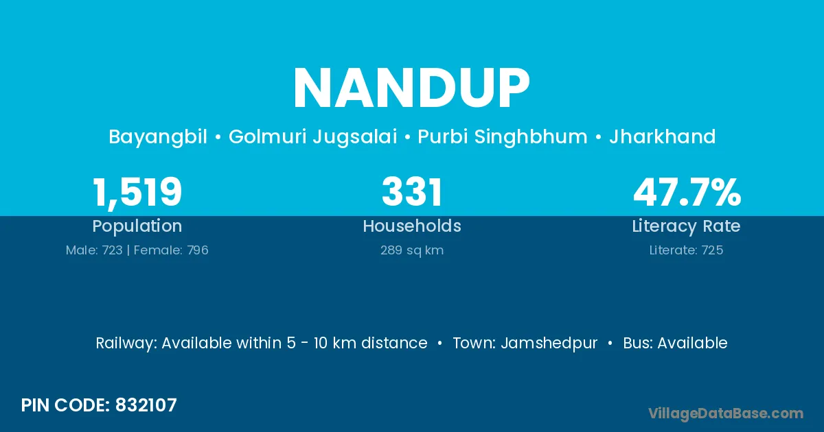 Jamshedpur is the nearest town to Nandup village for major economic activities