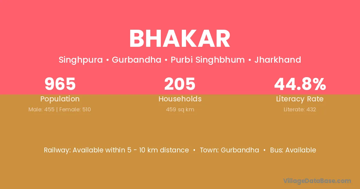 Bhakar village is located in the Gurbandha Subdivision of the Purbi Singhbhum district in Jharkhand .