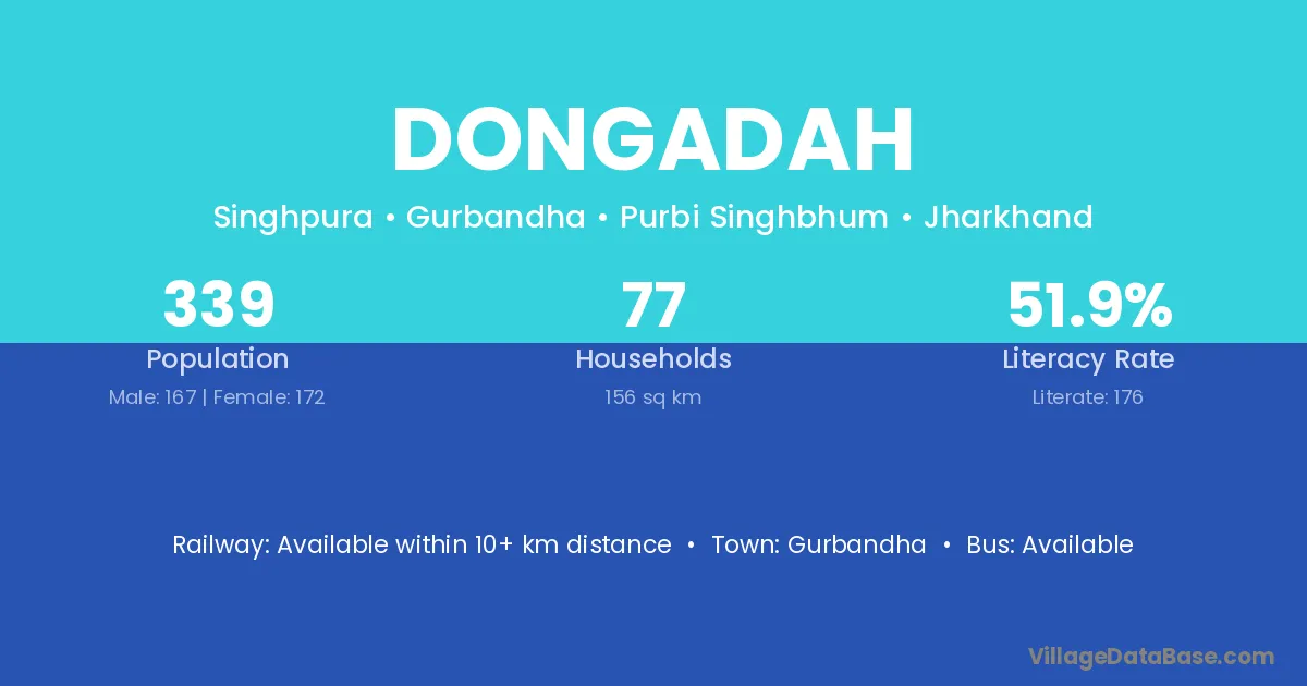 Dongadah village is located in the Gurbandha Subdivision of the Purbi Singhbhum district in Jharkhand .