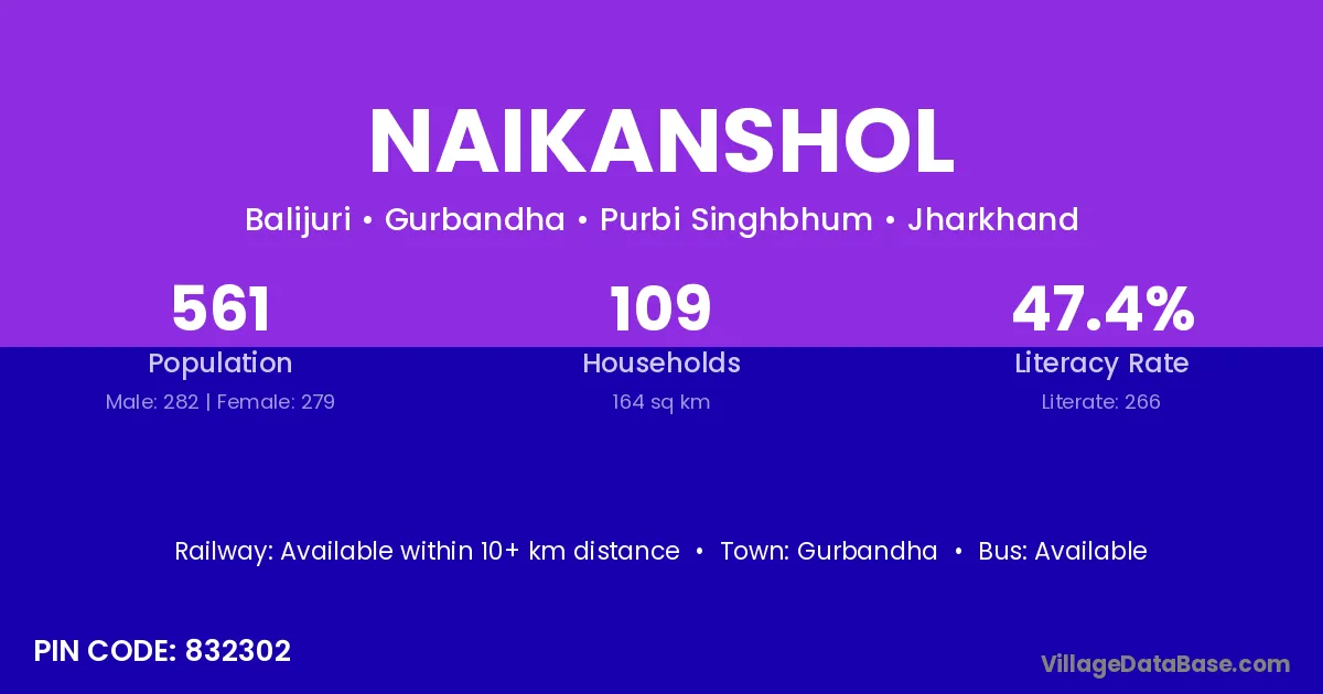 Naikanshol village is located in the Gurbandha Subdivision of the Purbi Singhbhum district in Jharkhand .
