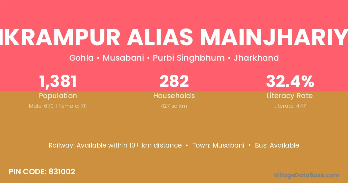 Bikrampur Alias Mainjhariya village is located in the Musabani Subdivision of the Purbi Singhbhum district in Jharkhand .