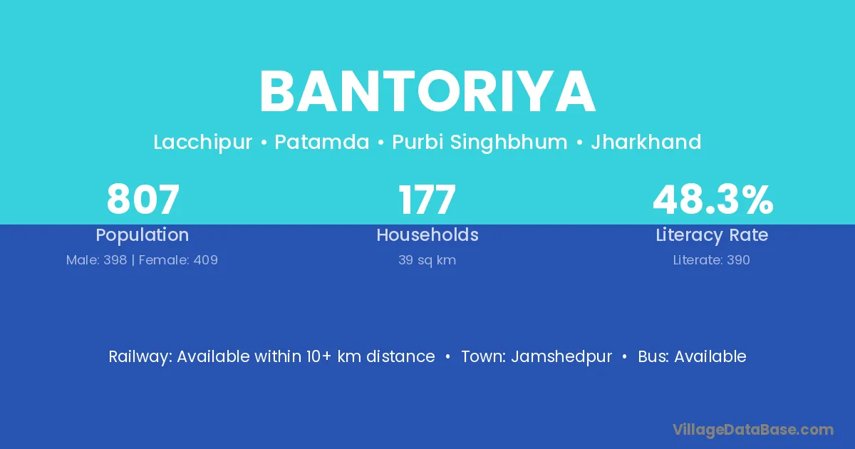 Jamshedpur is the nearest town to Bantoriya village for major economic activities