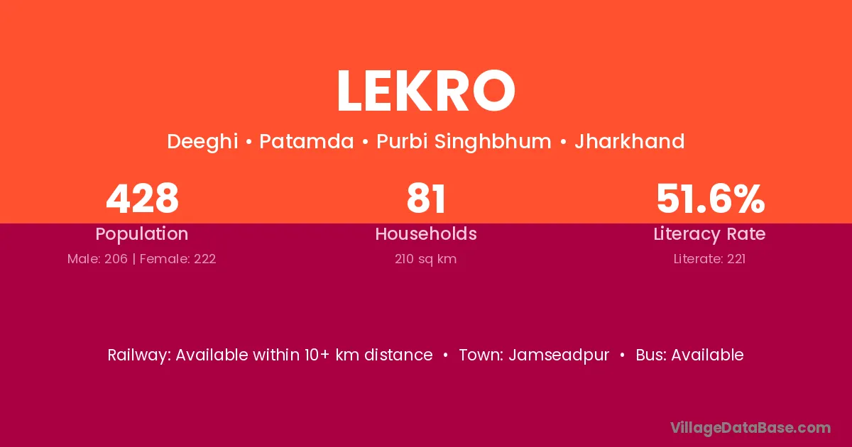 Lekro village is located in the Patamda Subdivision of the Purbi Singhbhum district in Jharkhand .
