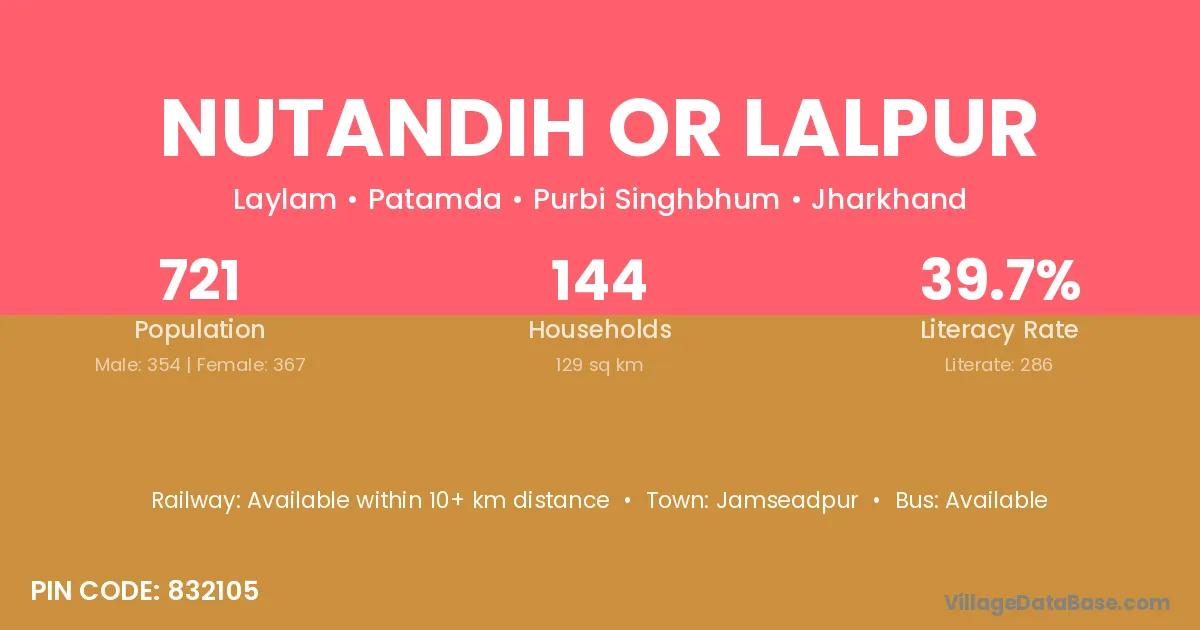 According to Census 2011 information, the village code of Nutandih Or Lalpur village is 832105.
