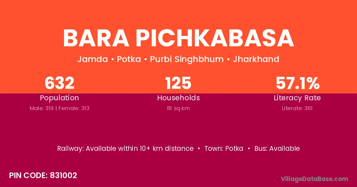 Bara Pichkabasa village has a total population of 632 people, of which 319 are males and 313 are females.