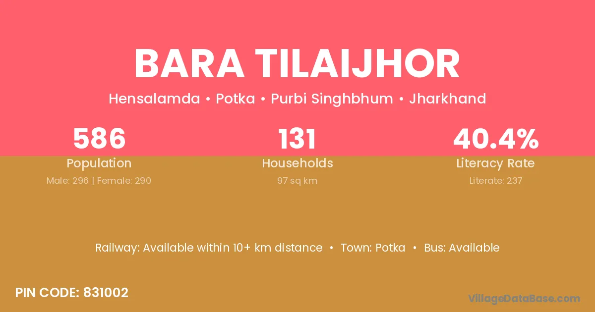 Bara Tilaijhor village has a total population of 586 people, of which 296 are males and 290 are females.