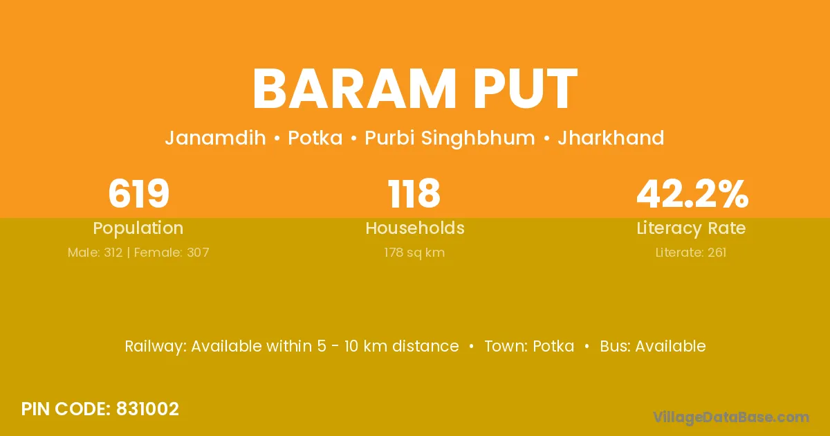 Baram Put village is located in the Potka Subdivision of the Purbi Singhbhum district in Jharkhand .
