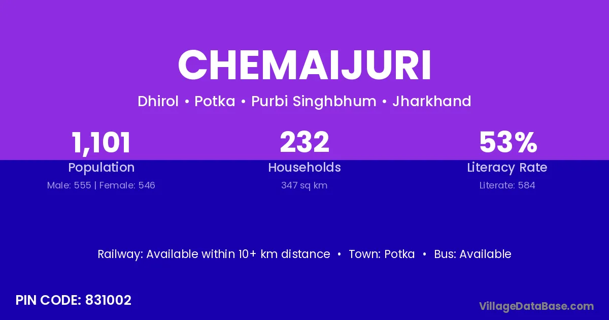 Chemaijuri village has a total population of 1,101 people, of which 555 are males and 546 are females.