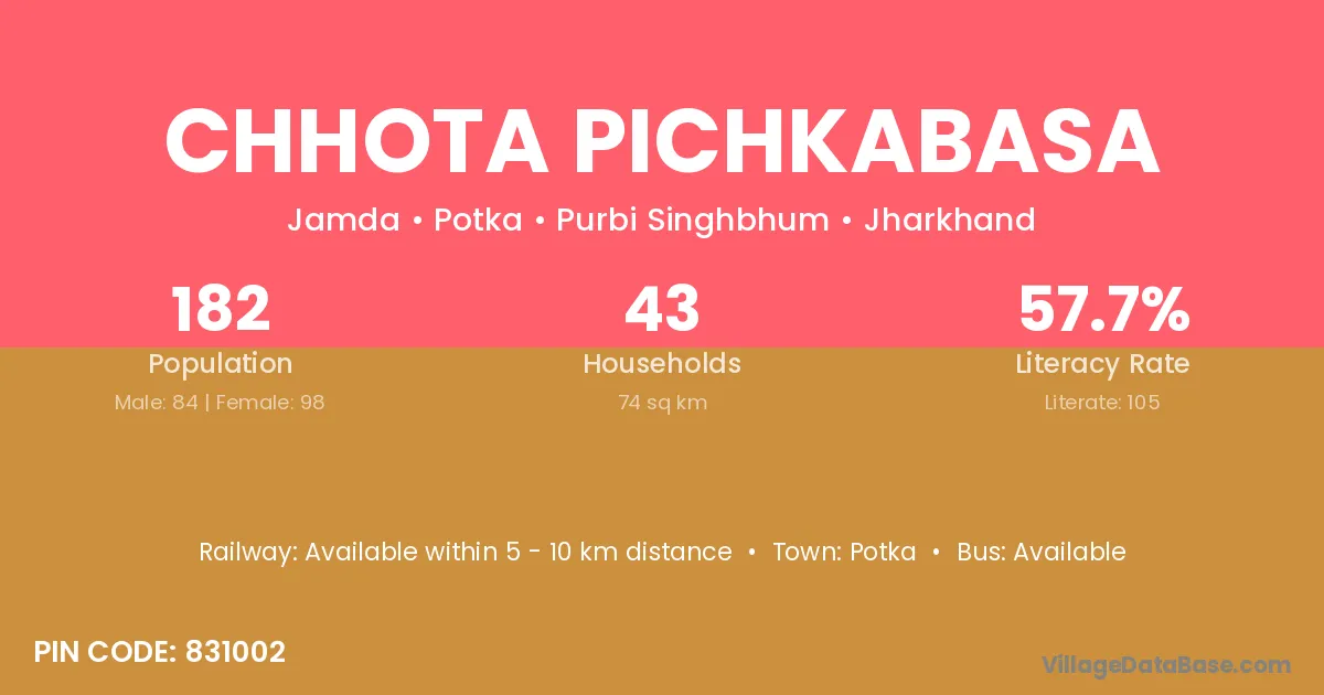 Chhota Pichkabasa village has a total population of 182 people, of which 84 are males and 98 are females.