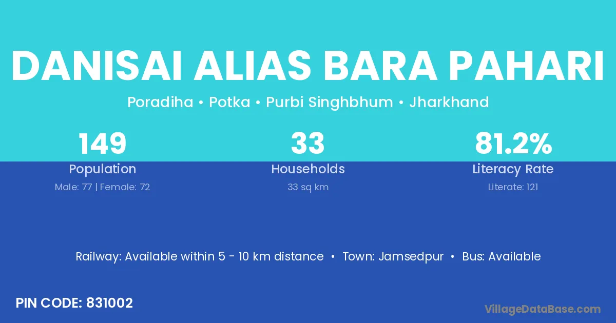 Danisai Alias Bara Pahari village has a total population of 149 people, of which 77 are males and 72 are females.